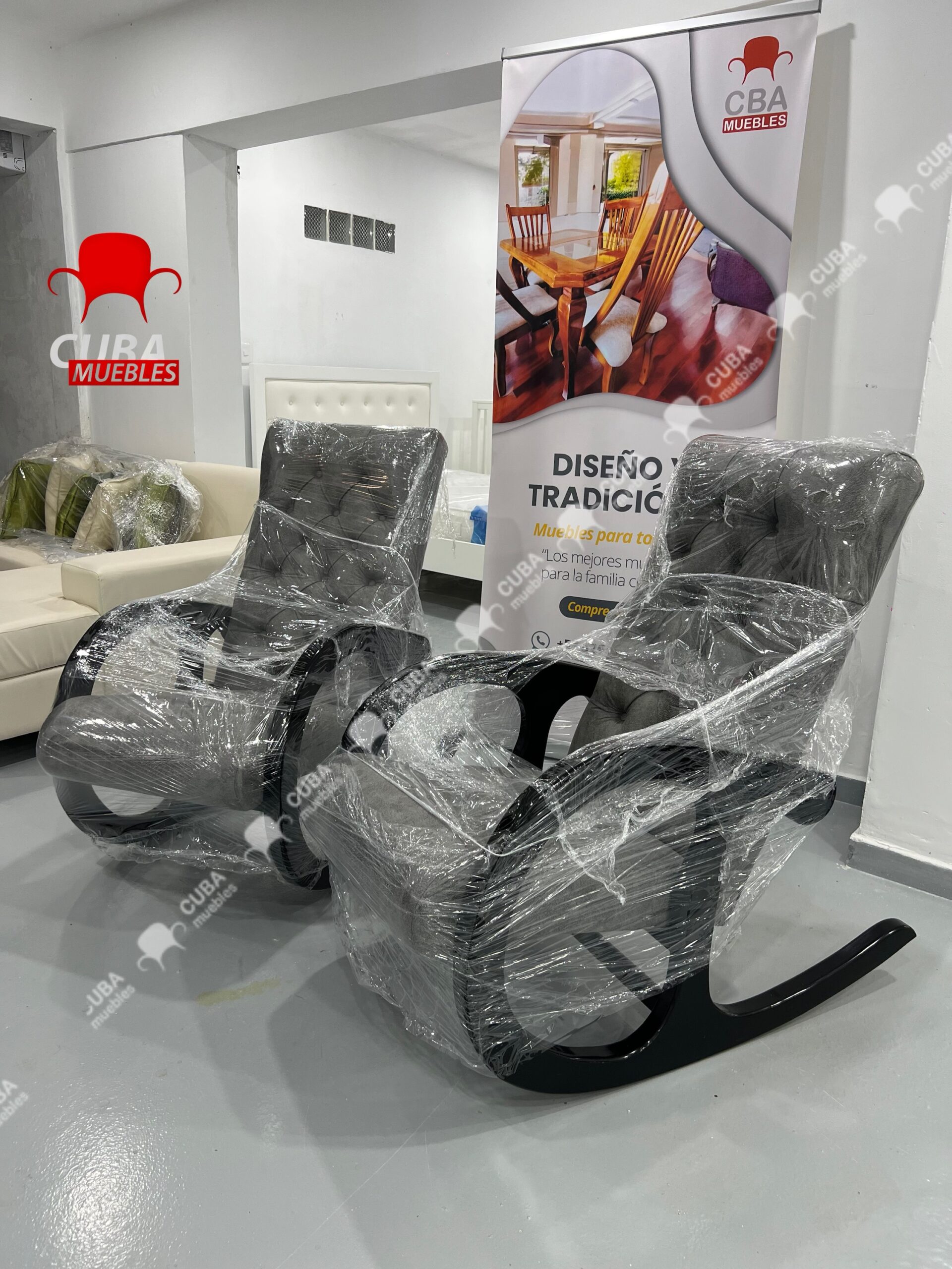 Acabado de la Madera en Negro y Tapizado en Polipiel Gris Oscuro.
